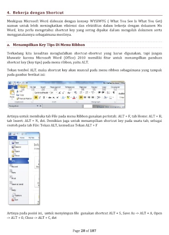 contoh pada tab File: Tekan ALT, kemudian Tekan ALT + F