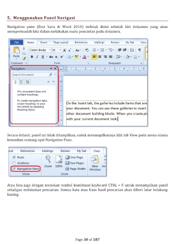Navigation pane ( itur baru di Word 2010) terletak disisi sebelah kiri dokumen yang akan