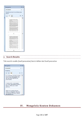 e. Search Results Tab search results (hasil pencarian) berisi daftar dari hasil pencarian IV. Mengelola Konten Dokumen Page 33 of 187