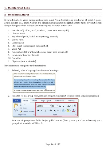 Secara default, Ms Word menggunakan jenis huruf / font Calibri yang berukuran 11 point. 1 point