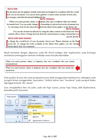 Masih berkaitan dengan alignment, pada Ms Word terdapat itur hyphenation yang berfungsi