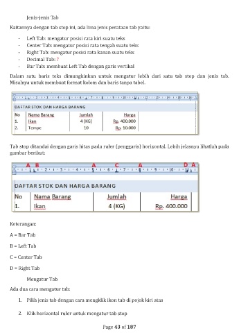 Tab stop ditandai dengan garis hitas pada ruler (penggaris) horizontal. Lebih jelasnya lihatlah pada