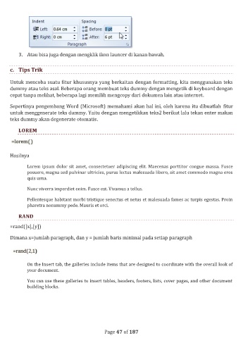 untuk menggenerate teks dummy. Yaitu dengan mengetikkan teks2 berikut lalu tekan enter makan