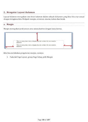 Margin merupakan jarak antara area utama konten dengan batas kertas.