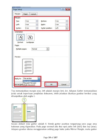 Adapun gambar diatas menggunakan setting page buku yaitu Mirror Margin, maka gutter