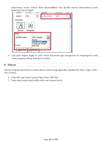 Ukuran yang dimaksud disini adalah ukuran kertas yang digunakan. Apakah A4, Folio, Legal, Letter,