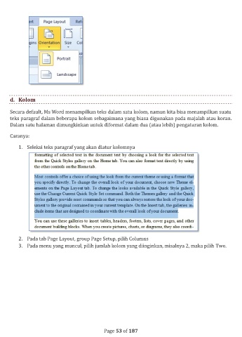 Secara default, Ms Word menampilkan teks dalam satu kolom, namun kita bisa menampilkan suatu