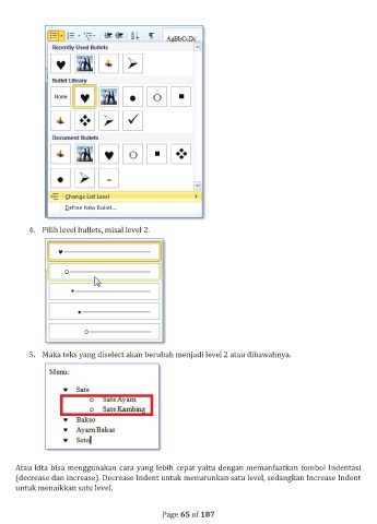 (decrease dan increase). Decrease Indent untuk menurunkan satu level, sedangkan Increase Indent