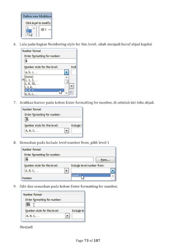 6. Lalu pada bagian Numbering style for this level:, ubah menjadi huruf abjad kapital