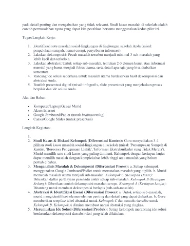 3. Menganalisis Masalah & Dekomposisi (Diferensiasi Proses): a. Setiap kelompok