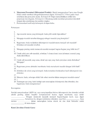Setelah menyelesaikan LKPD ini, saya menyimpulkan bahwa dekomposisi dan abstraksi adalah