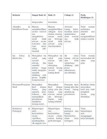 Kriteria Sangat Baik (4) Baik (3) Cukup (2) Perlu