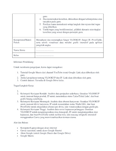 kesulitan yang sesuai dengan petunjuk guru.
