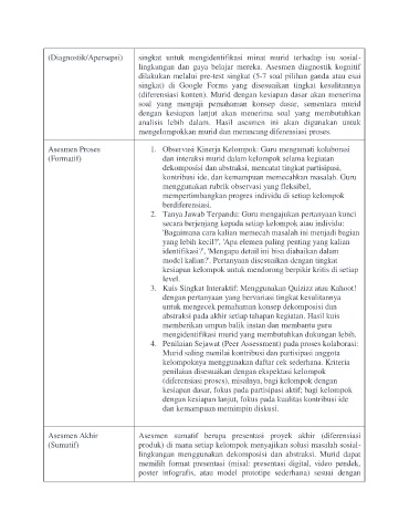 Asesmen Akhir Asesmen sumatif berupa presentasi proyek akhir (diferensiasi