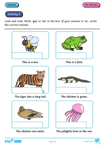 Look and read. Write ‘yes’ or ‘no’ in the box. If your answer is ‘no’, write