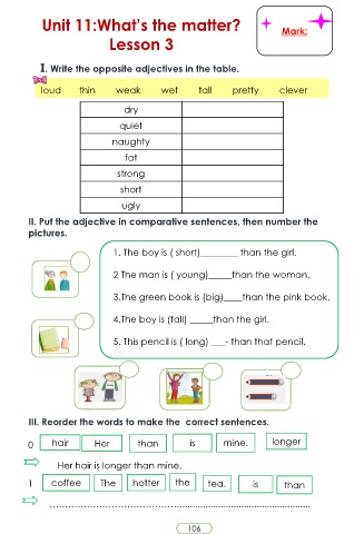 II. Put the adjective in comparative sentences, then number the