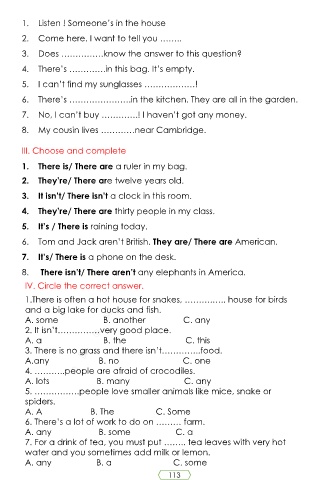 III. Choose and complete