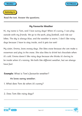 Hi, my name is Tom, and I love sunny days! When it’s sunny, I can play