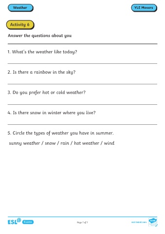 5. Circle the types of weather you have in summer.