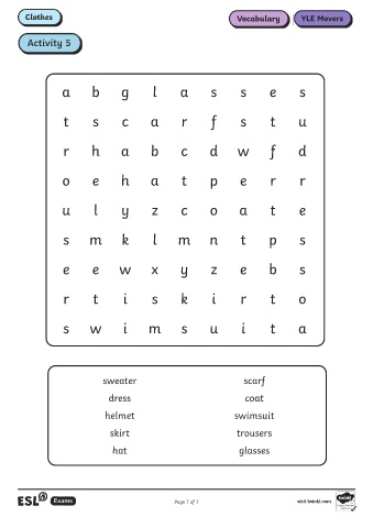 Clothes Vocabulary YLE Movers