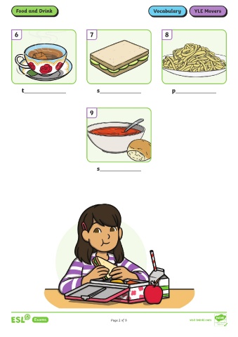 Food and Drink Vocabulary YLE Movers 6 7 8 t s p 9 s Page 2 of 8 visit twinkl.com