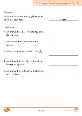 YLE Mo     v er s R eading and W         r iting P   ar  t 1