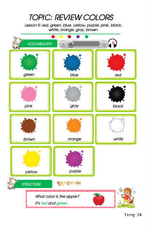 Lesson 5: red, green, blue, yellow, purple, pink, black,