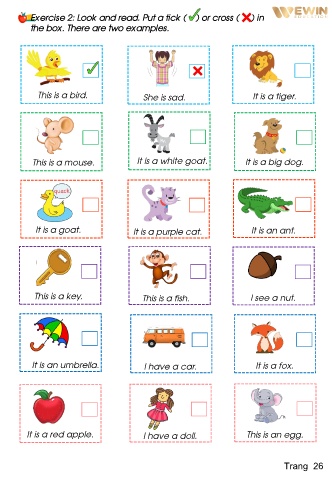 Exercise 2: Look and read. Put a tick (    ) or cross (     ) in