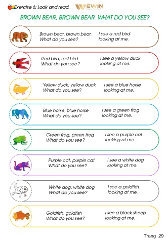 Brown bear, brown bear.               I see a red bird