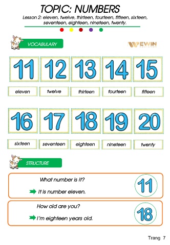 Lesson 2: eleven, twelve, thirteen, fourteen, fifteen, sixteen,