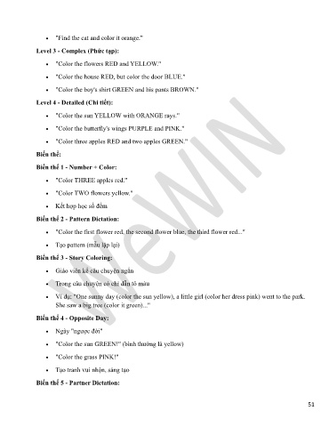 • Trong câu chuyện có chỉ dẫn tô màu