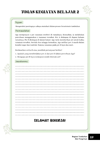 tanaman tersebut. Setelah dua minggu kemudian, Aga melihat pot A masih dalam
