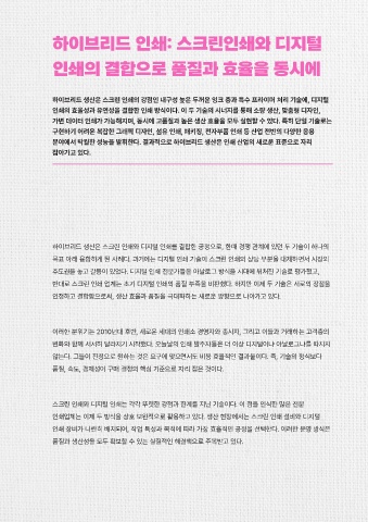 인쇄의 효율성과 유연성을 결합한 인쇄 방식이다. 이 두 기술의 시너지를 통해 소량 생산, 맞춤형 디자인,