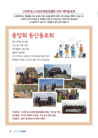 다양한 분야의 모임들 중 레저를 주제로 한 모임으로는 중앙회 등산동호회와
