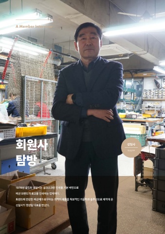 A Member Interview 회원사 성일사 정성일 대표 탐방 1978년 설립된 성일사는 실크스크린 인쇄를 기본 바탕으로 패션 브랜드의 로고를 인쇄하는 업체이다. 트렌드에 민감한 패션계가 요구하는 최적의 제품을 독보적인 기술력과 솔루션으로 제작해 온 성일사의 정성일 대표를 만났다.