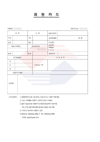 3. 협회 가입신청서와 회원카드는 절취(절취선)하여 사용 바람.