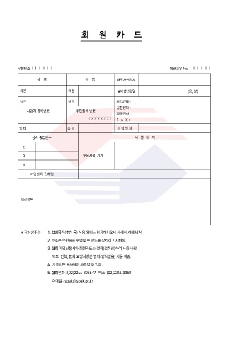 3. 협회 가입신청서와 회원카드는 절취(절취선)하여 사용 바람.