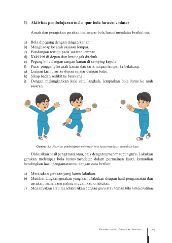 1) Aktivitas pembelajaran melempar bola lurus/mendatar