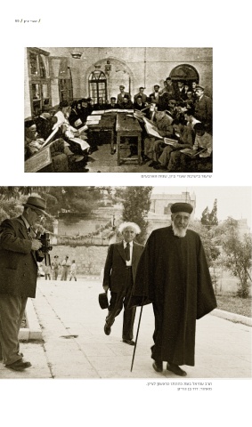/שערי ציון 99 / שיעור בישיבת שערי ציון ,שנות הארבעים הרב עוזיאל בעת כהונתו כראשון לציון. מאחור :דוד בן גוריון