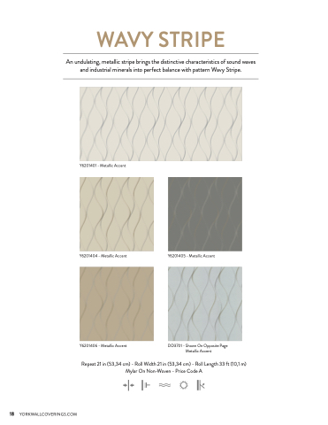 An undulating, metallic stripe brings the distinctive characteristics of sound waves and industrial minerals into perfect balance with pattern Wavy Stripe.