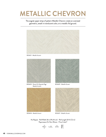 The angular paper strips of pattern Metallic Chevron create an oversized geometric, awash in translucent color, on a metallic foil ground.