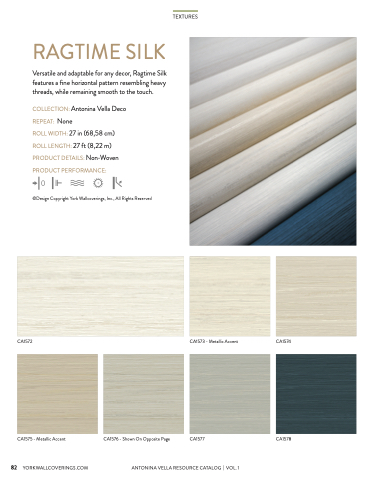 Versatile and adaptable for any decor, Ragtime Silk features a fine horizontal pattern resembling heavy threads, while remaining smooth to the touch.