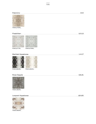 Palomino PSW1376RL Fleabitten PSW1377RL 6-9 Index 10-13 Marbled Appaloosa PSW1380RL PSW1381RL Rose Dapple PSW1382RL Leopard Appaloosa PSW1386RL 14-17 PSW1378RL 18-21 22-25