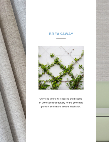 Chevrons shift to herringbone and become an unconventional delivery for the geometric gridwork and natural textural inspiration.