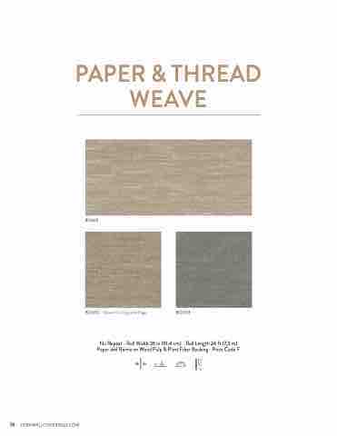 PAPER & THREAD WEAVE BO6611 BO6612 - Shown On Opposite Page BO6613 No Repeat - Roll Width 36 in (91,4 cm) - Roll Length 24 ft (7,3 m) Paper and Ramie on Wood Pulp & Plant Fiber Backing - Price Code F 14 YORKWALLCOVERINGS.COM