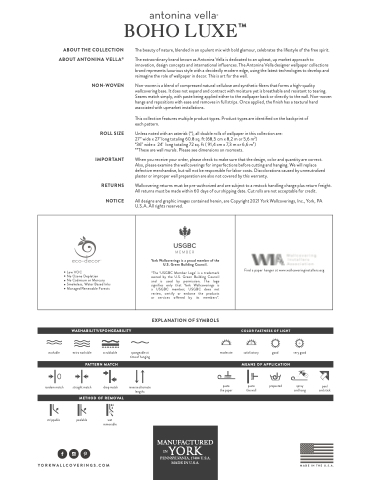 “The ‘USGBC Member Logo’ is a trademark owned by the U.S. Green Building Council and is used by permission. The logo signifies only that York Wallcoverings is a USGBC member; USGBC does not review, certify or endorse the products or services offered by its members”.