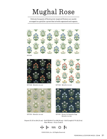Repeat 25.25 in (64,13 cm) - Roll Width 27 in (68,58 cm) - Roll Length 27 ft (8,22 m) Non-Woven - Price Code B