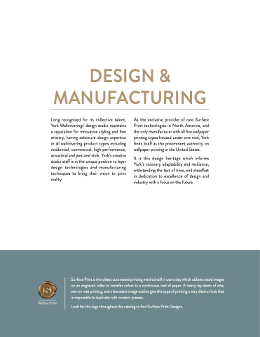 As the exclusive provider of rare Surface Print technologies in North America, and the only manufacturer with all five wallpaper printing types housed under one roof, York finds itself as the preeminent authority on wallpaper printing in the United States.