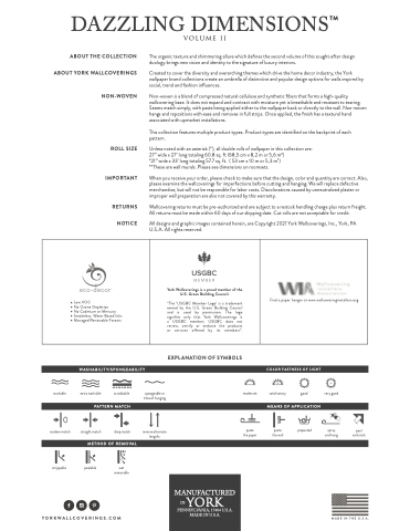“The ‘USGBC Member Logo’ is a trademark owned by the U.S. Green Building Council and is used by permission. The logo signifies only that York Wallcoverings is a USGBC member; USGBC does not review, certify or endorse the products or services offered by its members”.