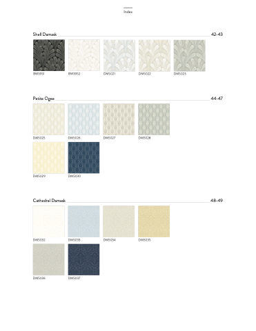 Shell Damask BW3951 Petite Ogee 42-43 Index BW3952 DM5021 DM5022 DM5023 DM5025 DM5026 DM5027 DM5029 DM5030 Cathedral Damask DM5032 DM5033 DM5034 DM5036 DM5037 DM5028 DM5035 44-47 48-49